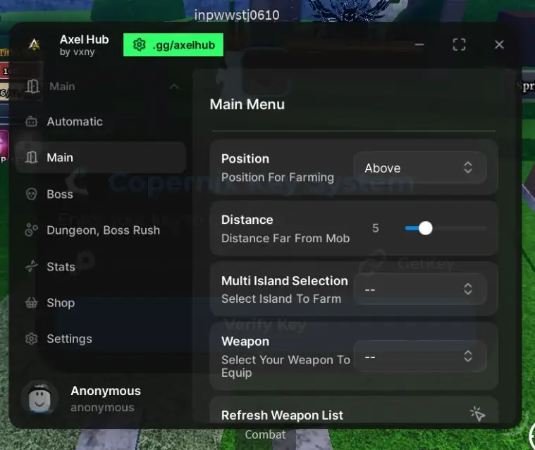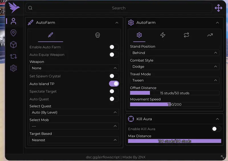 This feature allows you to auto Infinite kill enemies, auto equip weapons, auto set skills, and much more!!