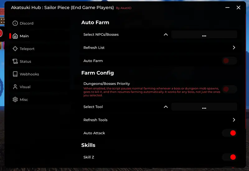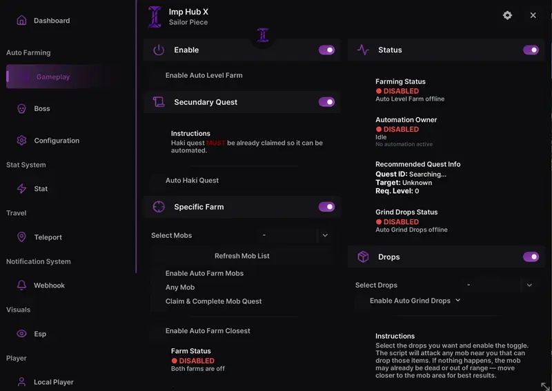 The Sailor Piece is Lua-based code that adds features in the game like auto farm tasks, Auto skills, Auto kill, teleports, and more.